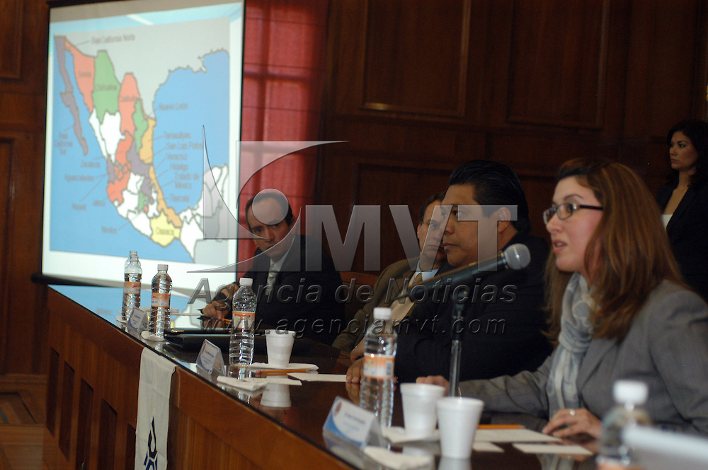 Toluca, Mex.- Carlos Alberto Pérez Cuevas (cen), presidente de la Comisión Legislativa de Procuración de Justicia, Diana Cristal González Obregón, maestra especializada en juícios orales, durante la presentación de la conferencia sobre los “Juicios Orales en México”. Agencia MVT / Luis Enrique Hernandez V. (DIGITAL)